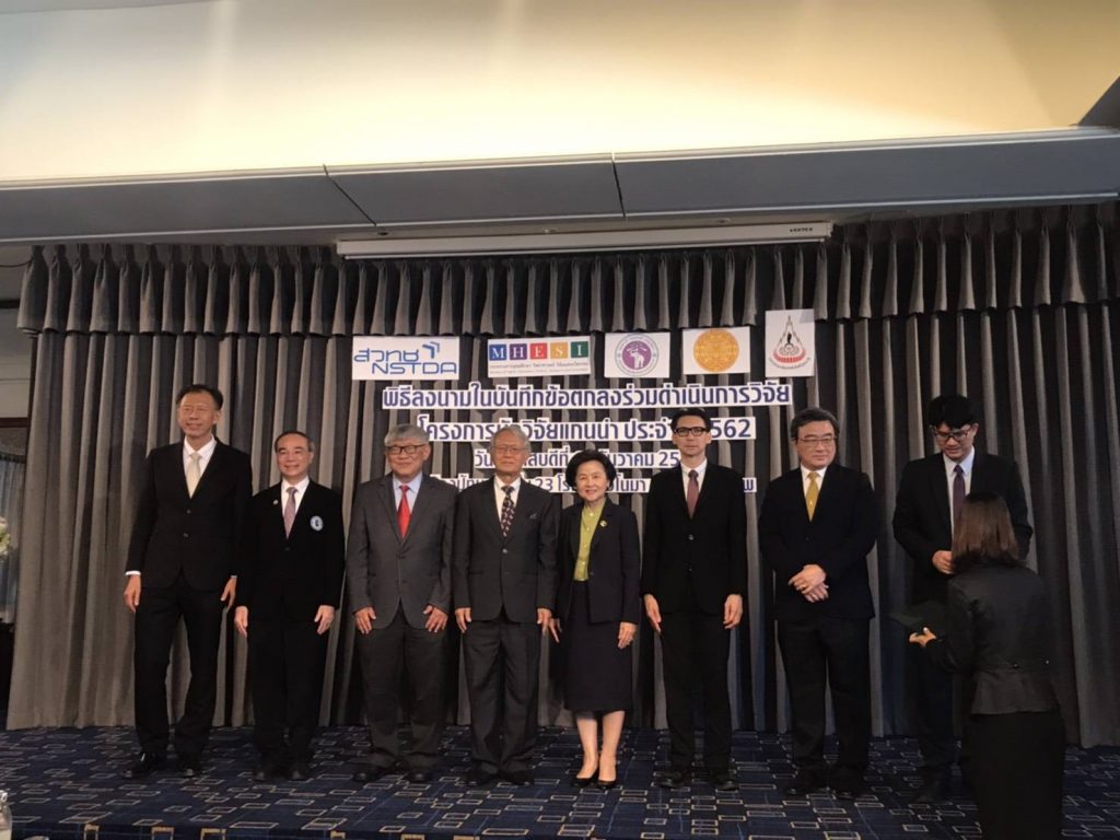 นักวิจัยแกนนำ ประจำปี 2562 จากโครงการวิจัยเรื่อง “การพัฒนาเทคโนโลยีและมาตรฐานการปฏิบัติงานก่อสร้างอย่างยั่งยืน” จากสำนักงานพัฒนาวิทยาศาสตร์และเทคโนโลยีแห่งชาติ (สวทช.) เมื่อวันที่ 19 ธันวาคม 2562