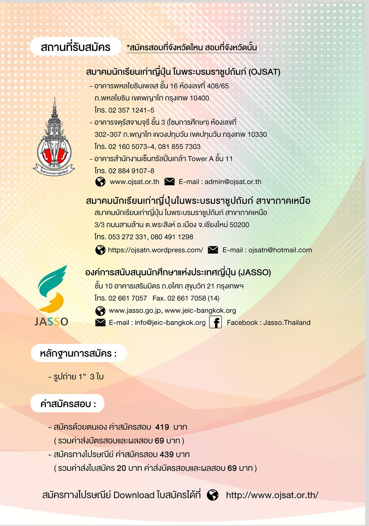 - Download ใบสมัครการสอบ www.ojsat.or.th กรอกใบสมัครให้เรียบร้อยพร้อมส่งรูปถ่าย 3 ใบ และ ใบโอนเงินค่าสมัคร