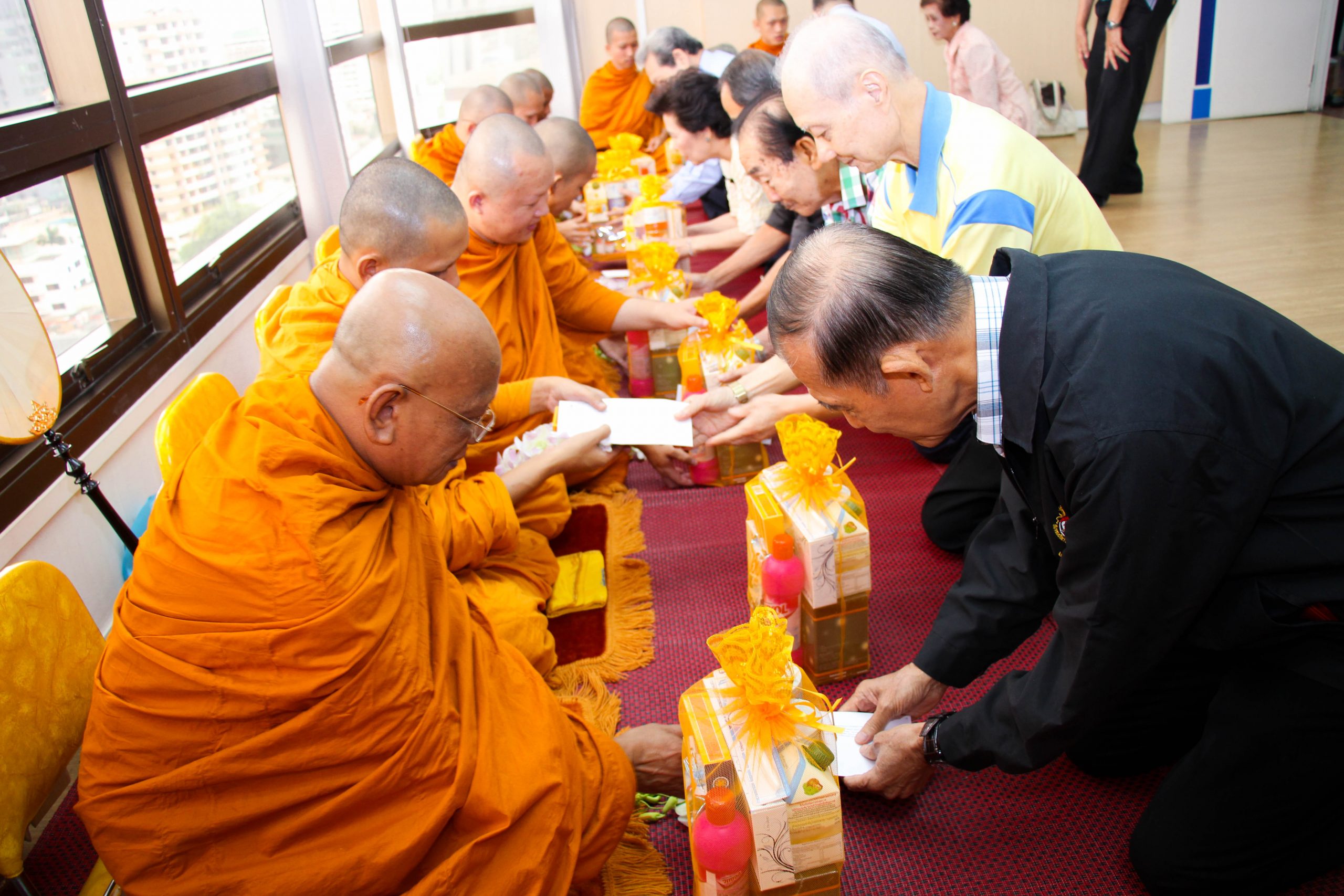 พระสงฆ์ 9 รูป เดินทางมาถึงสมาคมฯ นายกสมาคมฯ จุดธูปเทียน