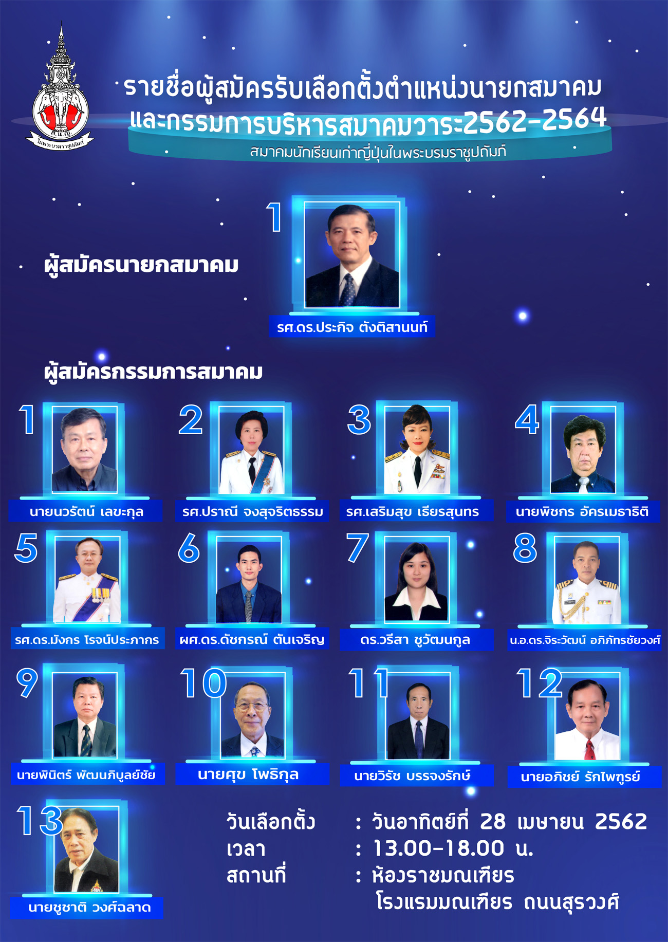 รายชื่อผู้สมัครรับเลือกตั้ง ตำแหน่งนายกสมาคมและกรรมการบริหารสมาคมวาระ 2562-2564