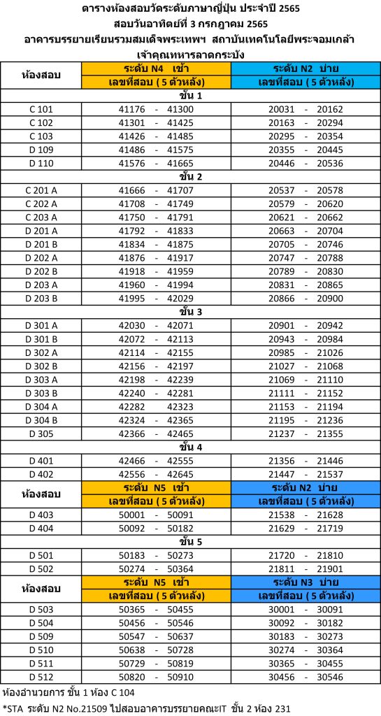 - เนื่องจากจำนวนผู้สอบมีจำนวนมากกว่า 10,000 คน กรุณาใช้ระบบขนส่งมวลชนสาธารณะแทนการใช้รถส่วนตัว*