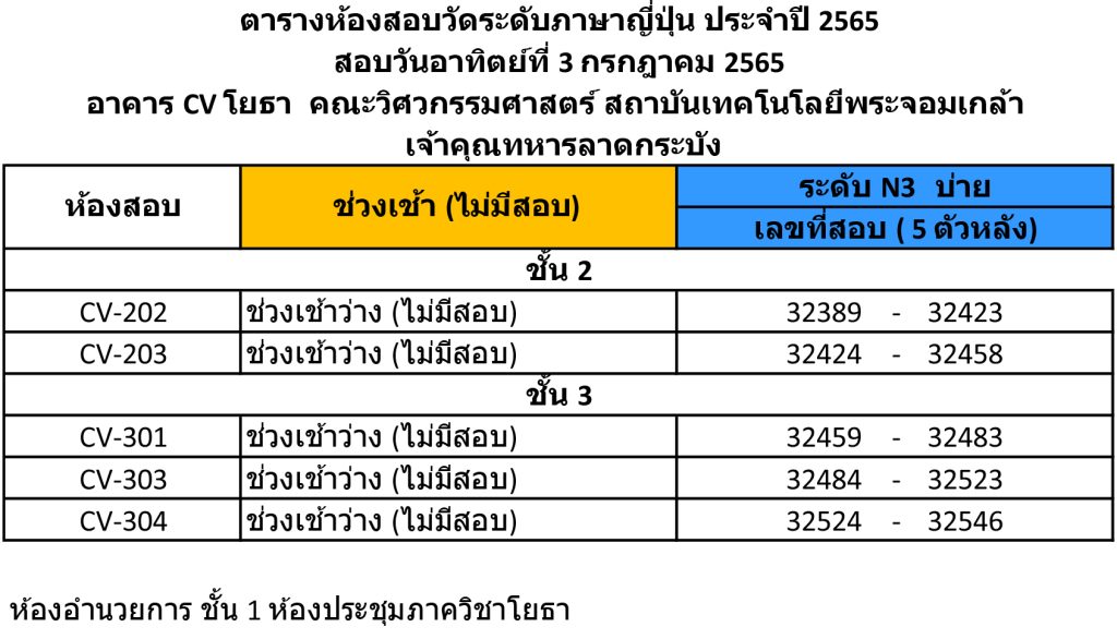วันสอบ: วันอาทิตย์ ที่ 3 กรกฎาคม 2565