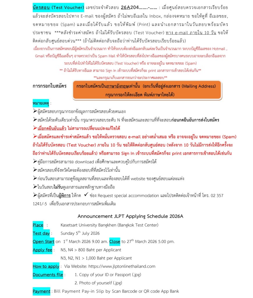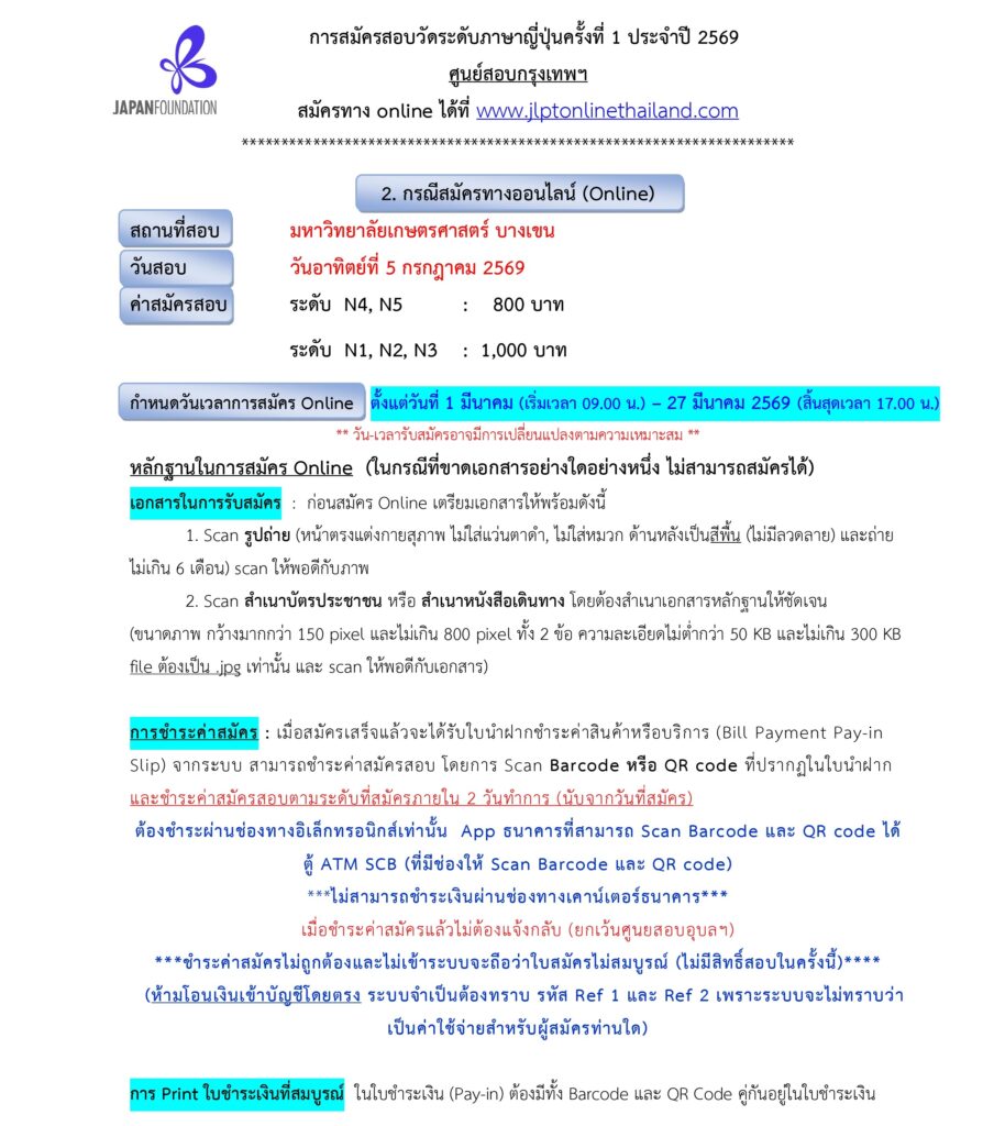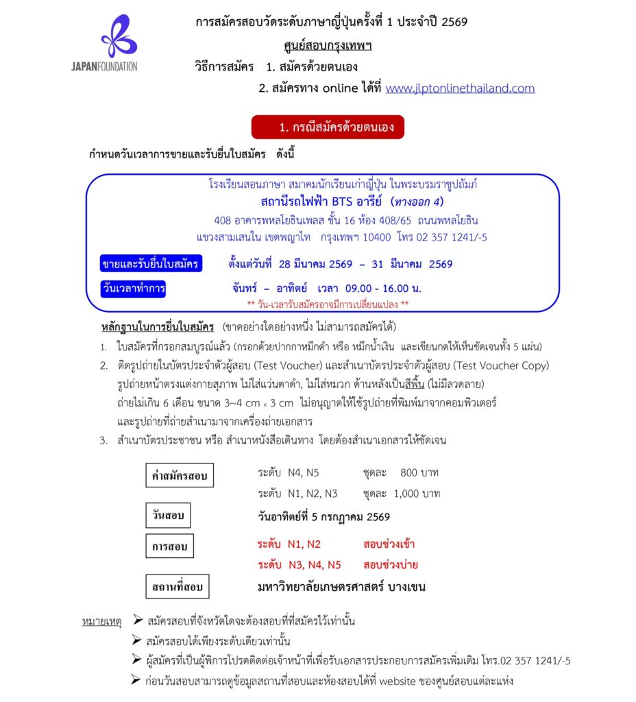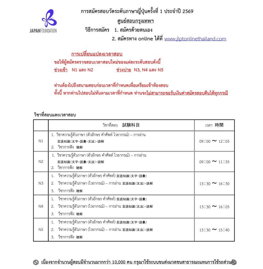 กำหนดการรับสมัครสอบวัดระดับภาษาญี่ปุ่น (JLPT) ครั้งที่ 1 ประจำปี 2569