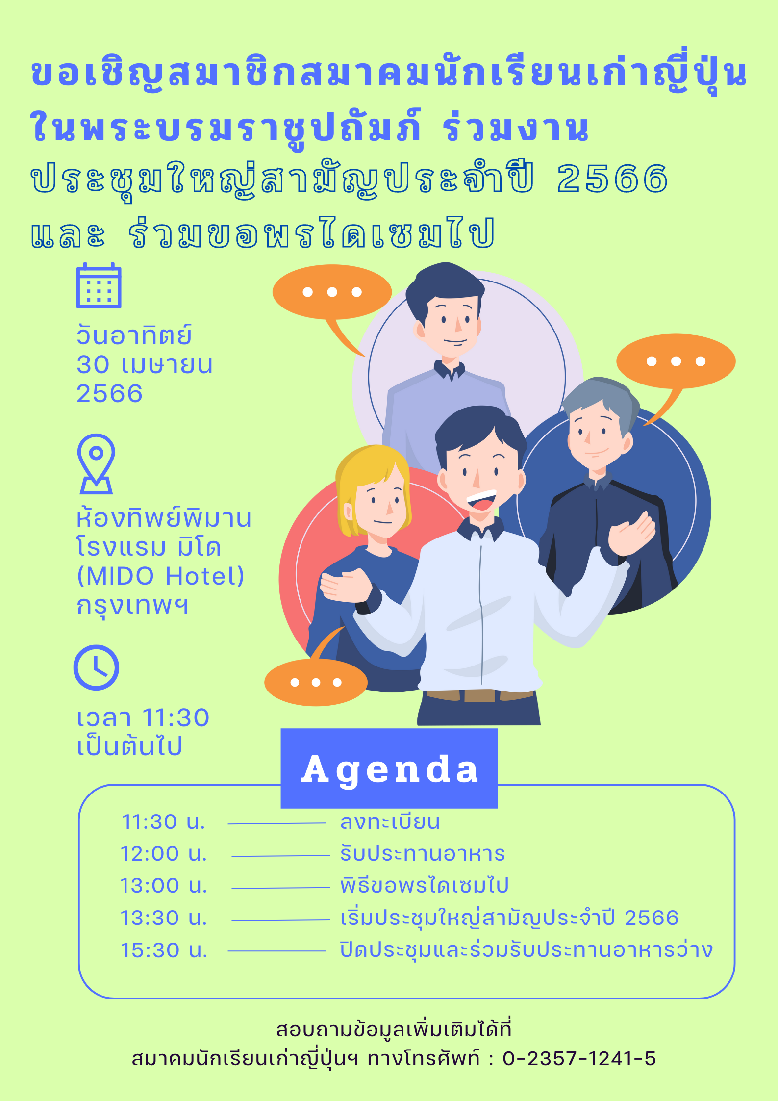 13.30 น. ประชุมใหญ่สามัญประจำปี 2566 ณ ห้องทิพย์พิมาน ชั้น 1