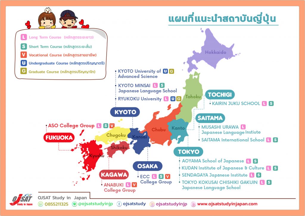 แผนก OJSAT Study in Japan มี MOU ร่วมกับสถาบันสอนภาษาญี่ปุ่น โรงเรียนวิชาชีพ และมหาวิทยาลัย ซึ่งมีจำนวนหลายแห่งที่มีทั้งความน่าเชื่อถือและมีคุณภาพในการเรียนการสอน