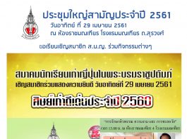 ประชุมใหญ่สามัญประจำปี 2561 วันอาทิตย์ ที่ 29 เมษายน 2561 ณ ห้องราชมณเฑียร โรงแรมมณเฑียร ถ.สุรวงศ์...