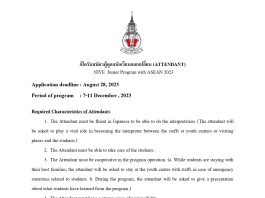 ประกาศรับสมัครผู้ดูแลนักเรียนแลกเปลี่ยน (ATTENDANT) โครงการ NIYE Junior Program with ASEAN 2023