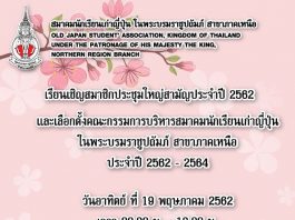 การประชุมใหญ่สามัญประจำปี 2562 สมาคมนักเรียนเก่าญี่ปุ่น ในพระบรมราชูปถัมภ์ สาขาภาคเหนือ