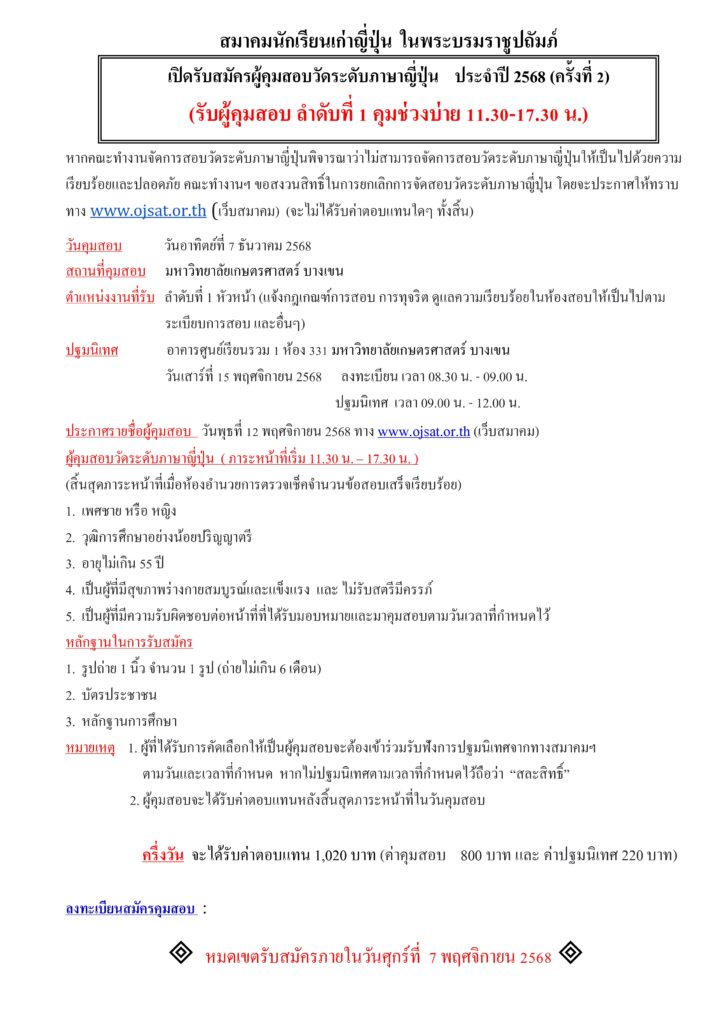 ลงทะเบียนสมัครคุมสอบ : https://docs.google.com/forms/d/e/1FAIpQLSdcbUyof3PaDooPFBk0DJy6J-EQsR7zEk6s4SaU_ifgQhOJow/viewform?usp=pp_url