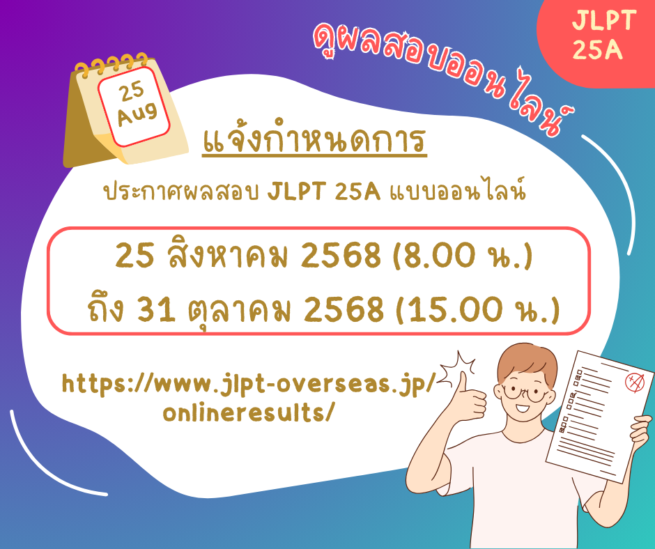 ผู้สอบในประเทศไทยสามารถตรวจผลสอบ JLPT รอบเดือนกรกฎาคม 2568 (25A) ทางออนไลน์ได้