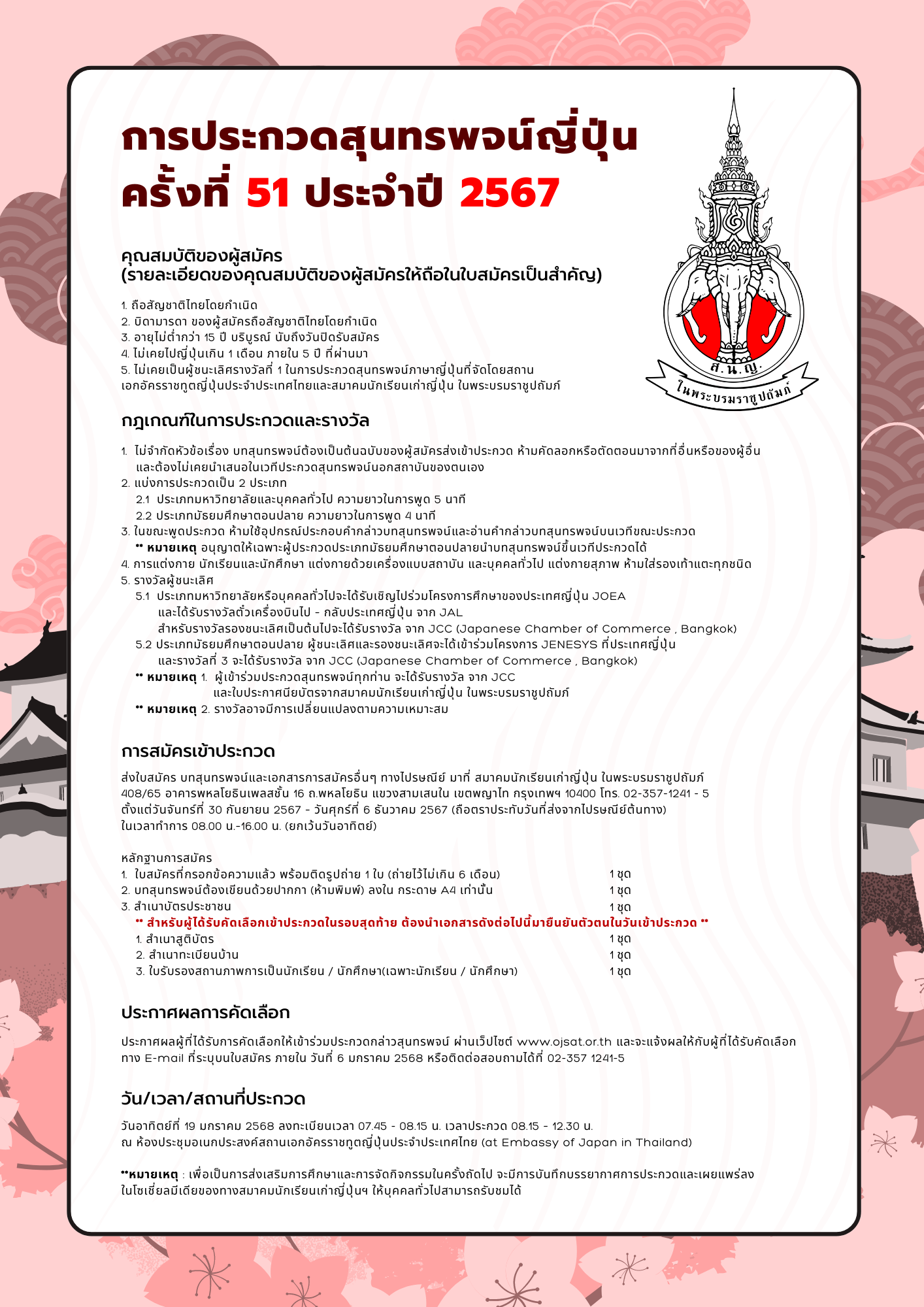 เปิดรับสมัครผู้เข้าประกวดสุนทรพจน์ภาษาญี่ปุ่น ครั้งที่ 51 ประจำปี 2567