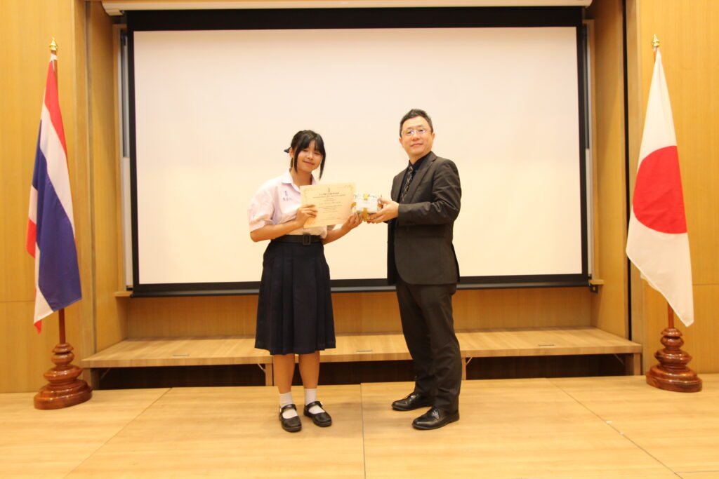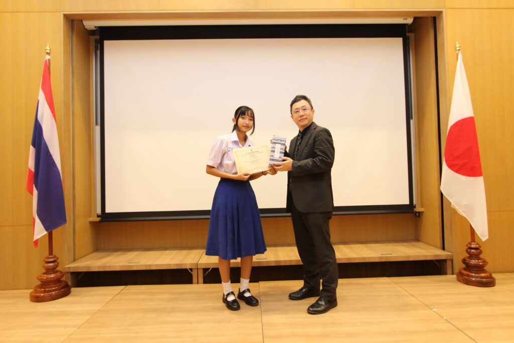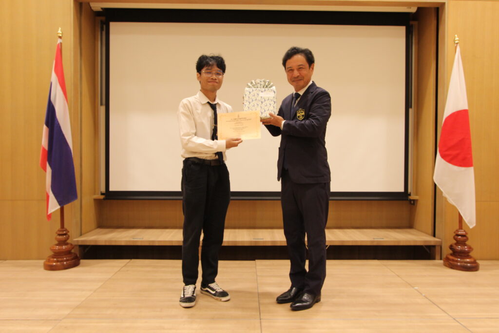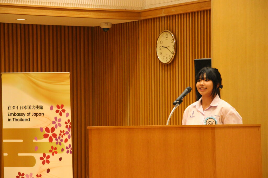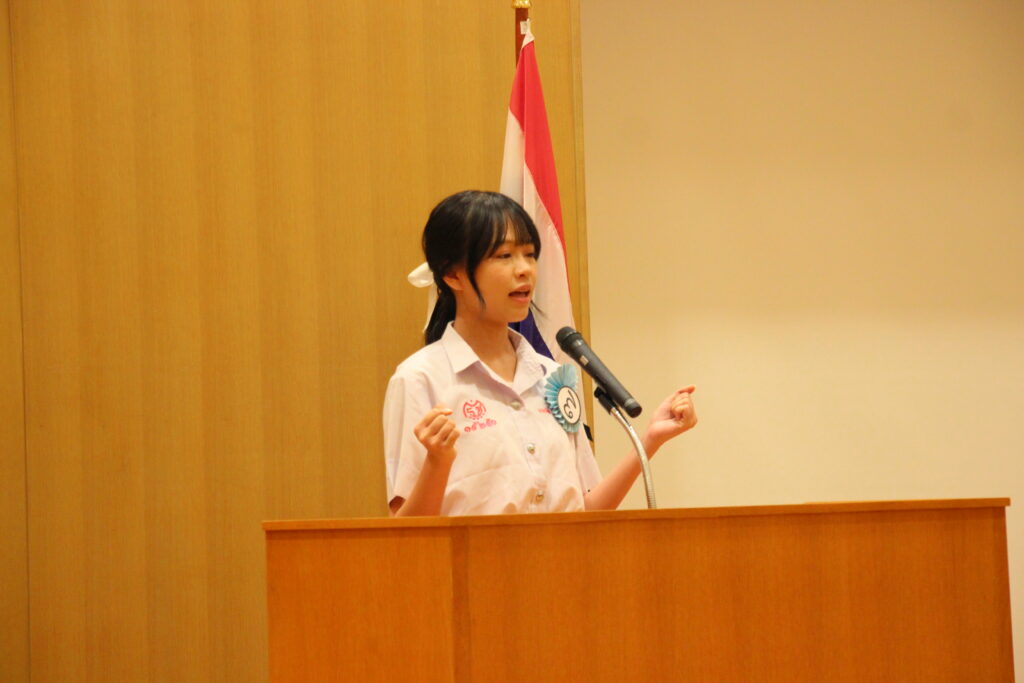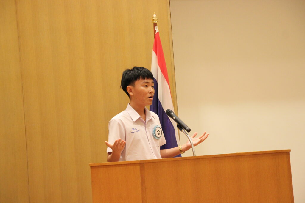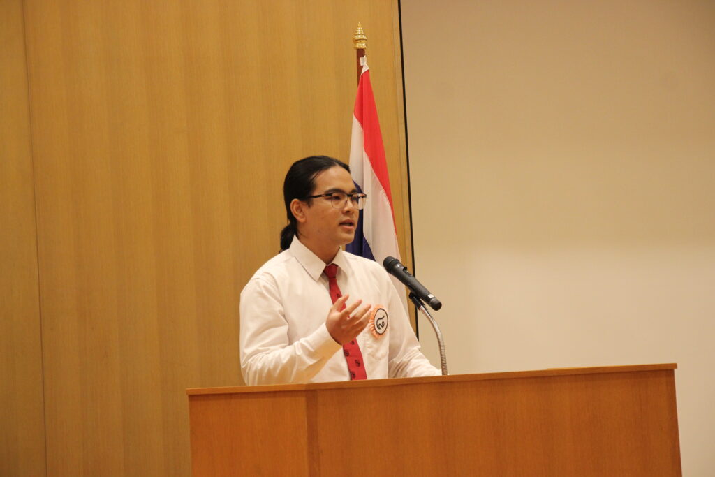 นายธนายุทร ราชมณี จาก สถาบันเทคโนโลยีไทย-ญี่ปุ่น หัวข้อ 世界全体は変えられなくても、誰か一人の世界なら変えられる แม้เราเปลี่ยนโลกทั้งใบไม่ได้ แต่เราสามารถเปลี่ยนโลกของใครคนหนึ่งได้