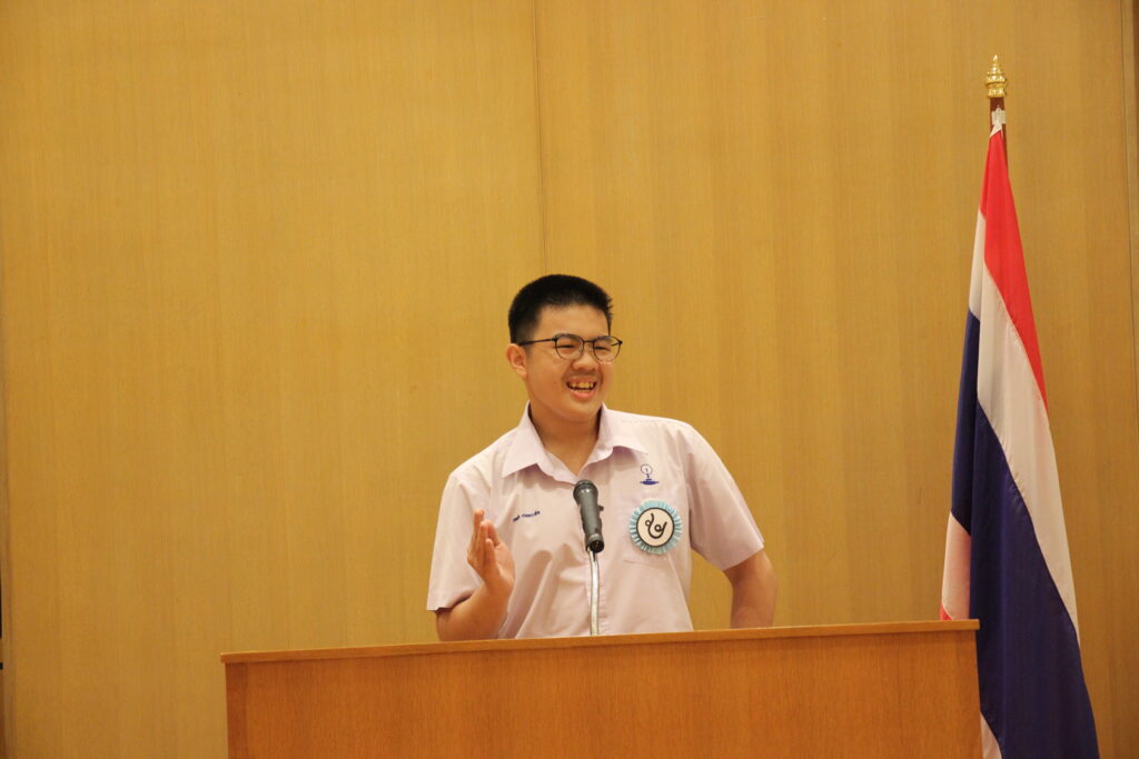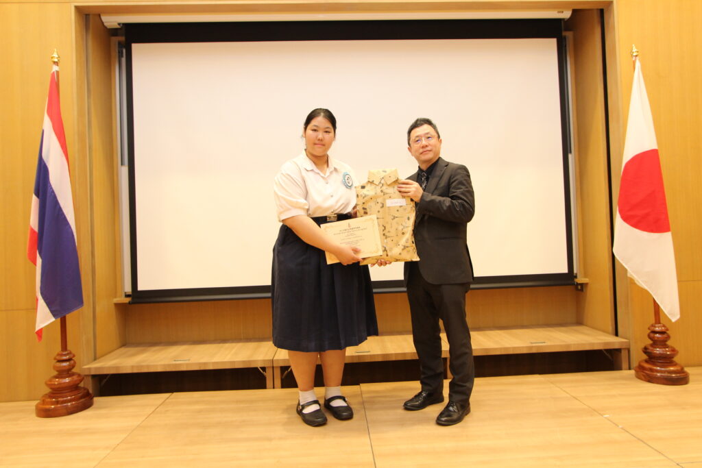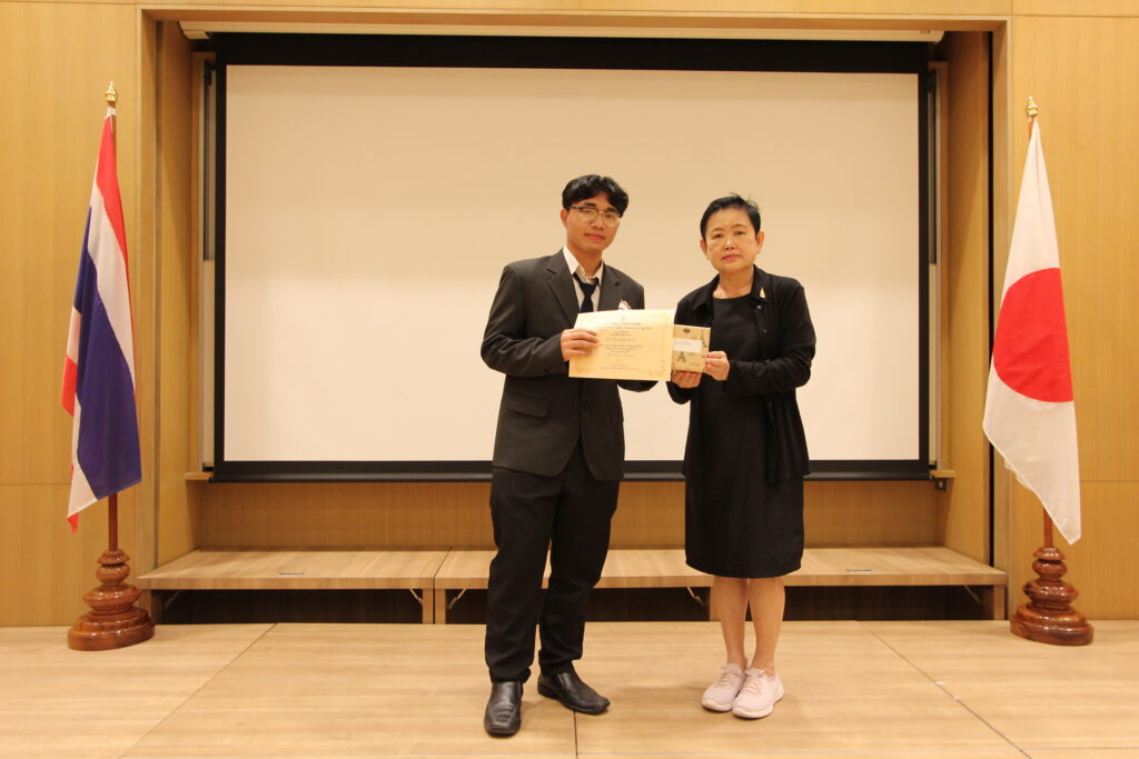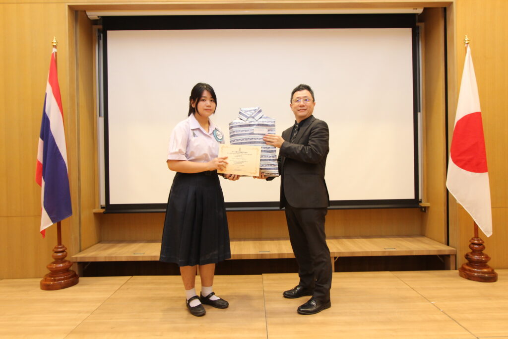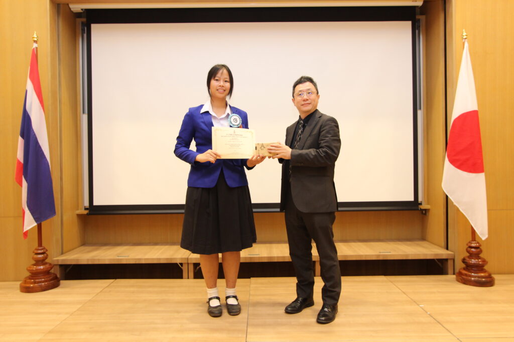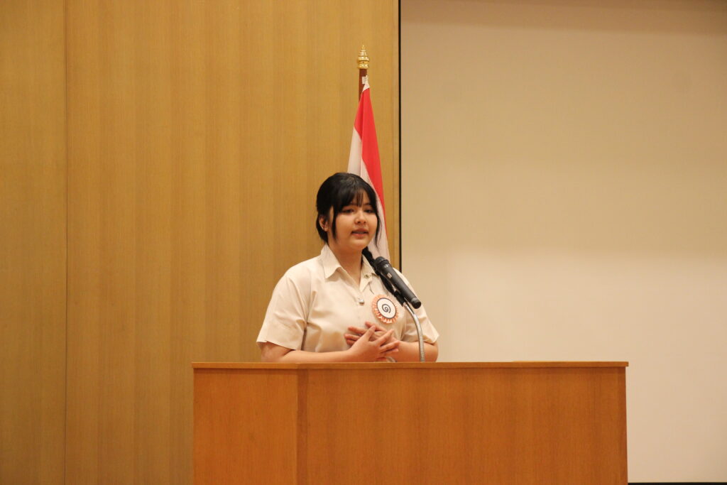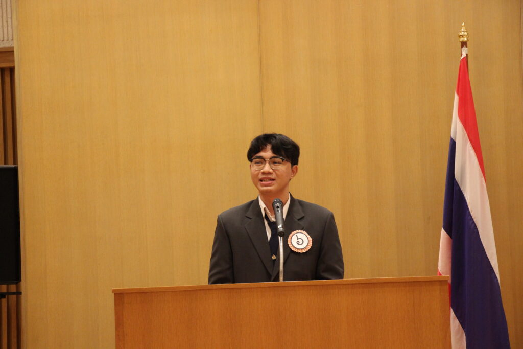 นายธนายุทร ราชมณี จาก สถาบันเทคโนโลยีไทย-ญี่ปุ่น หัวข้อ 世界全体は変えられなくても、誰か一人の世界なら変えられる แม้เราเปลี่ยนโลกทั้งใบไม่ได้ แต่เราสามารถเปลี่ยนโลกของใครคนหนึ่งได้