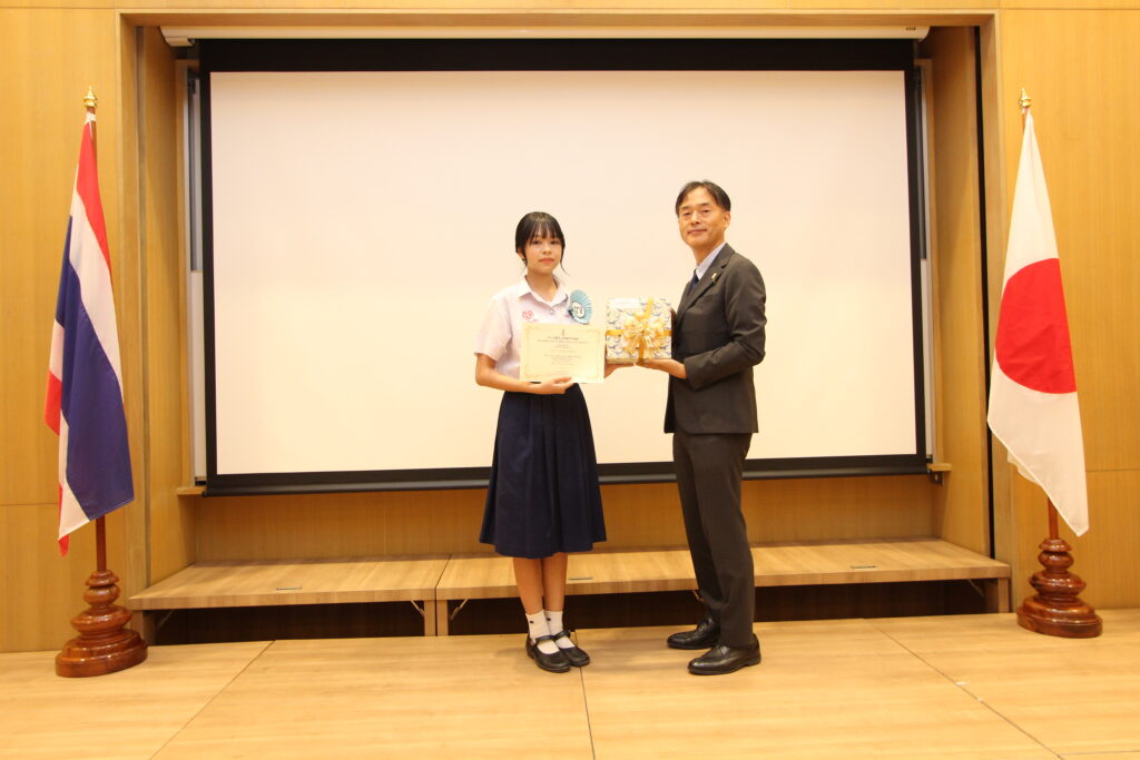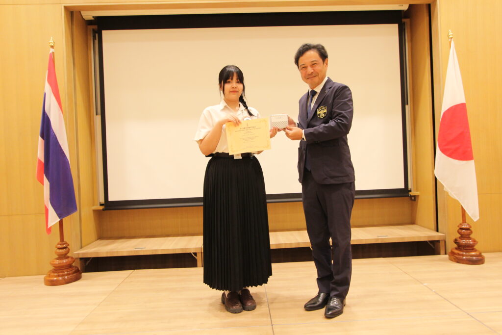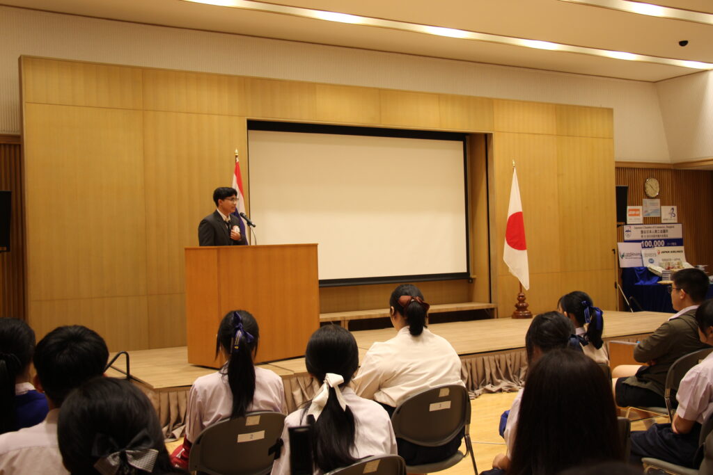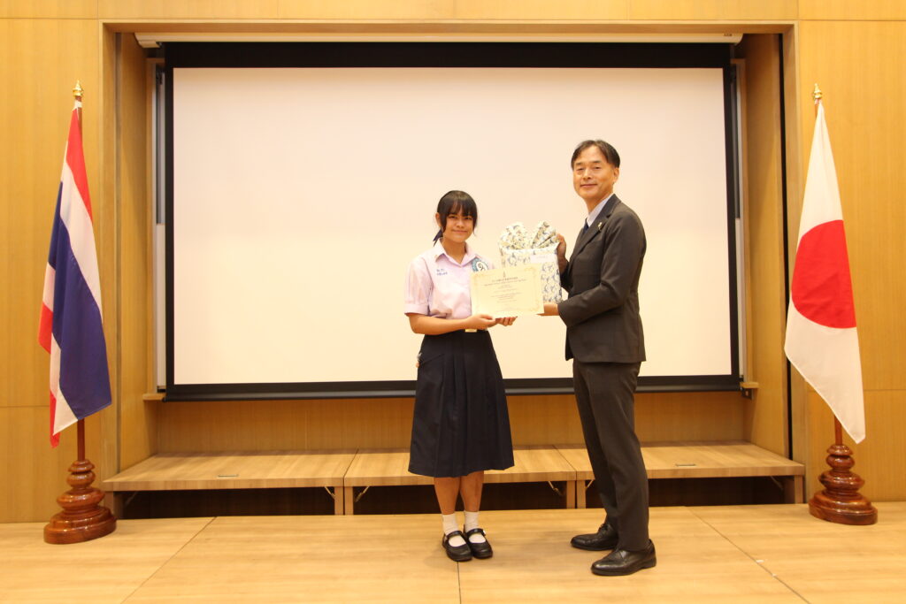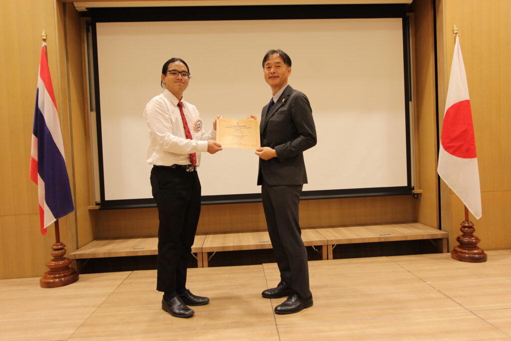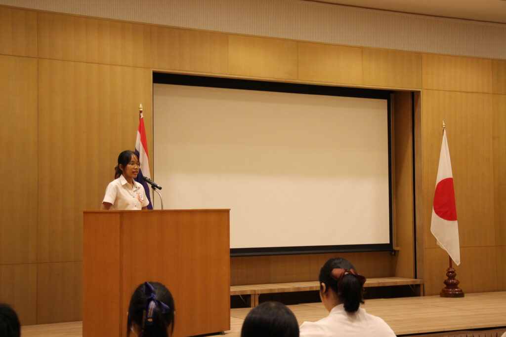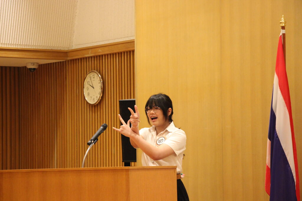 นายธนายุทร ราชมณี จาก สถาบันเทคโนโลยีไทย-ญี่ปุ่น หัวข้อ 世界全体は変えられなくても、誰か一人の世界なら変えられる แม้เราเปลี่ยนโลกทั้งใบไม่ได้ แต่เราสามารถเปลี่ยนโลกของใครคนหนึ่งได้