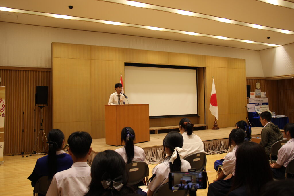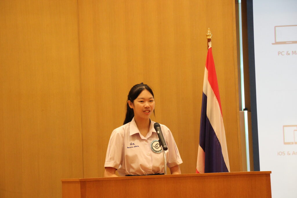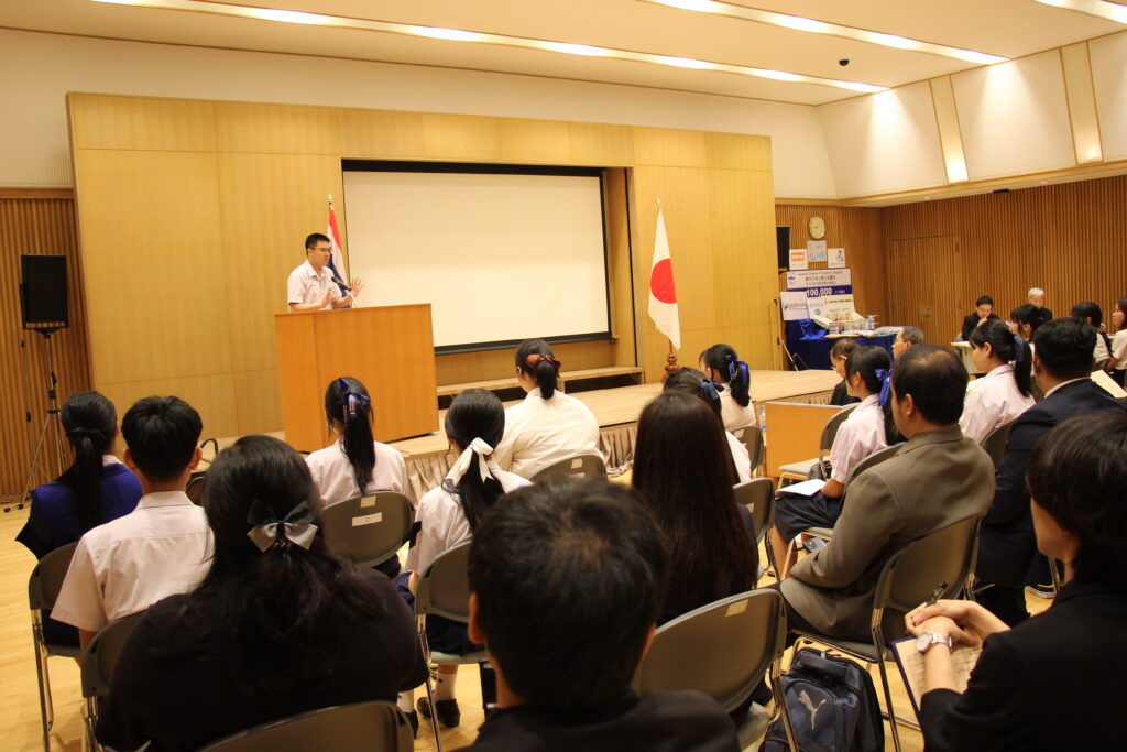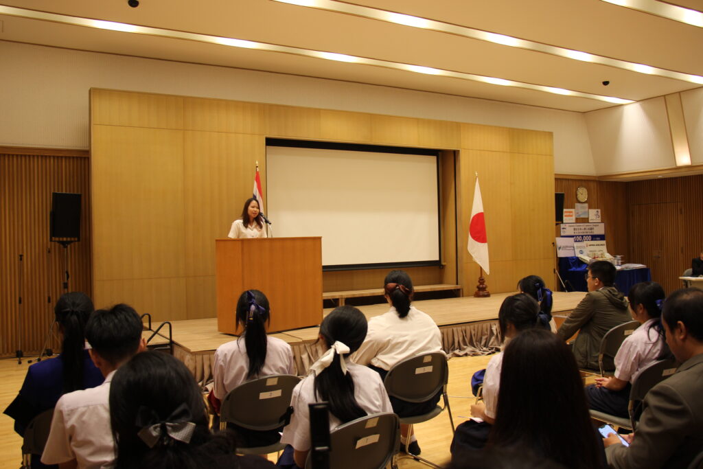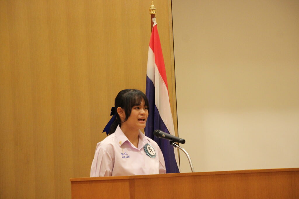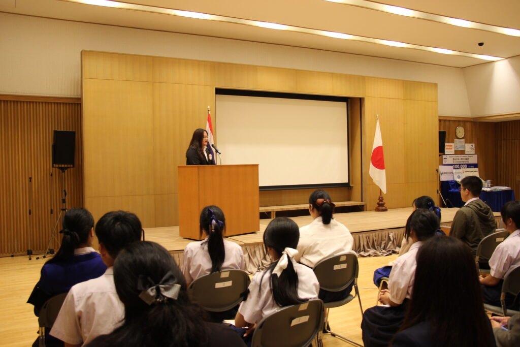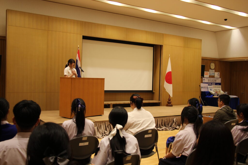 นายธนายุทร ราชมณี จาก สถาบันเทคโนโลยีไทย-ญี่ปุ่น หัวข้อ 世界全体は変えられなくても、誰か一人の世界なら変えられる แม้เราเปลี่ยนโลกทั้งใบไม่ได้ แต่เราสามารถเปลี่ยนโลกของใครคนหนึ่งได้