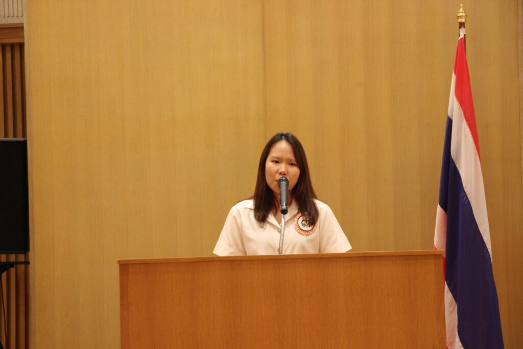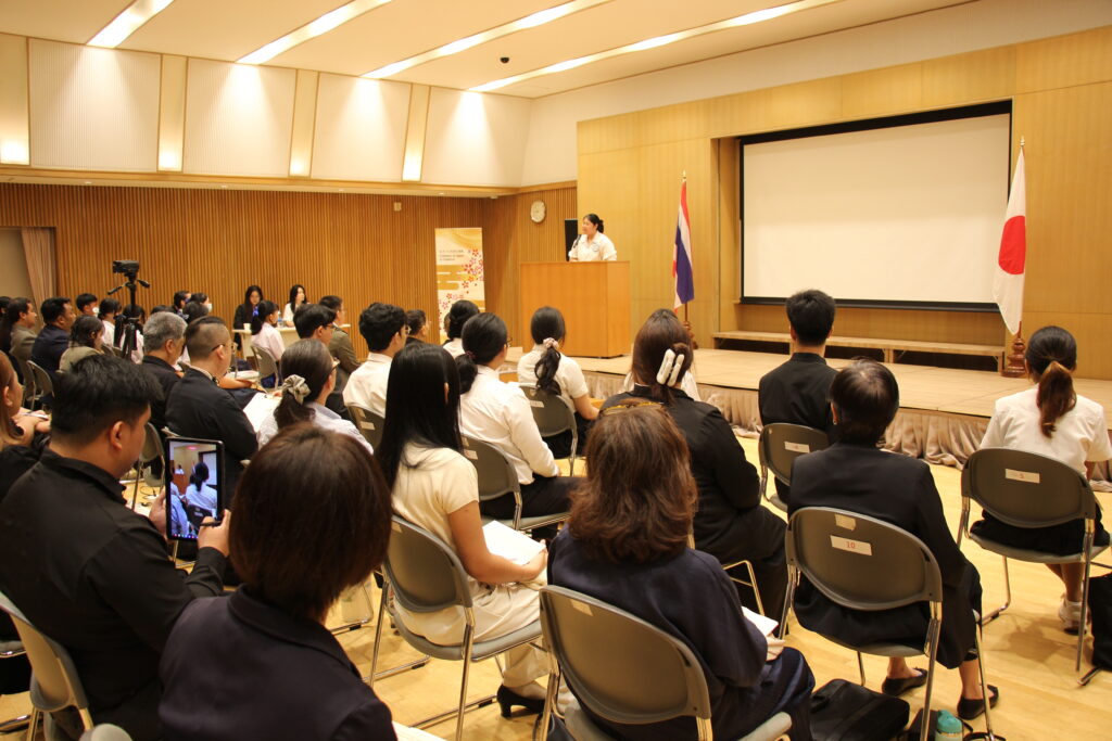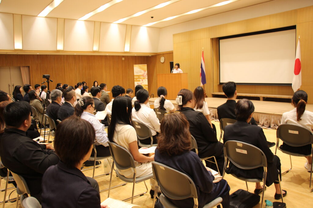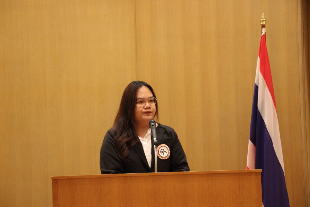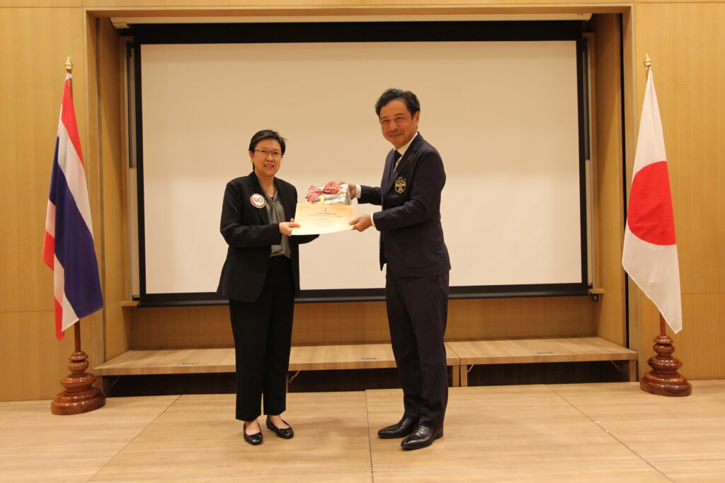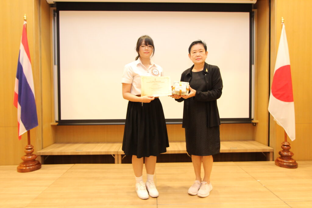 นางวริษา โอสถานนท์ จาก สถาบันเทคโนโลยีไทย-ญี่ปุ่น หัวข้อ いくつになっても 学ぶことを楽しめる เรียนอย่างสนุก ย่อมสุขได้ทุกวัย