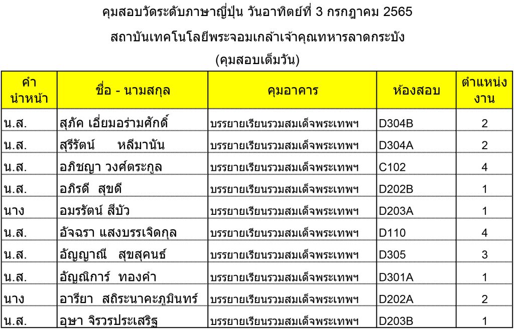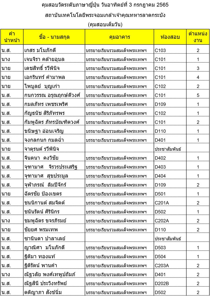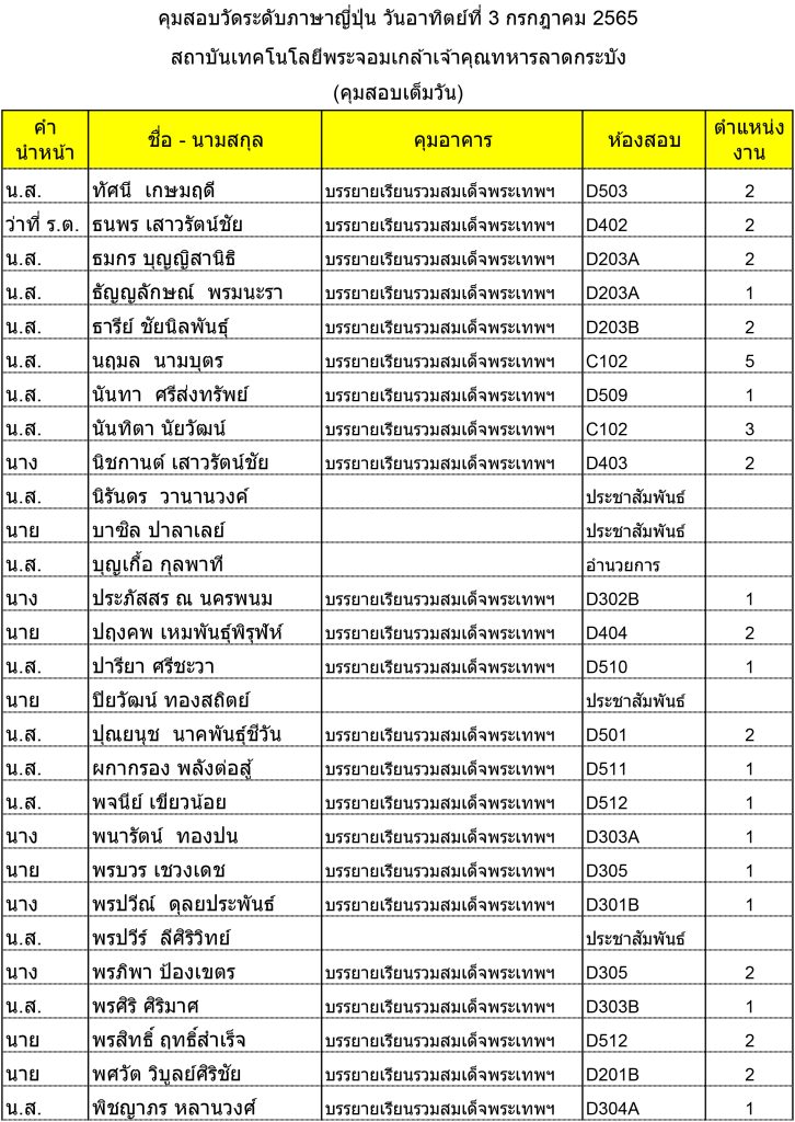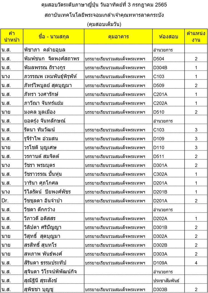 สมาคมนักเรียนเก่าญี่ปุ่น ในพระบรมราชูปถัมภ์ ขอประกาศรายชื่อผู้คุมสอบดังมีรายละเอียดดังนี้